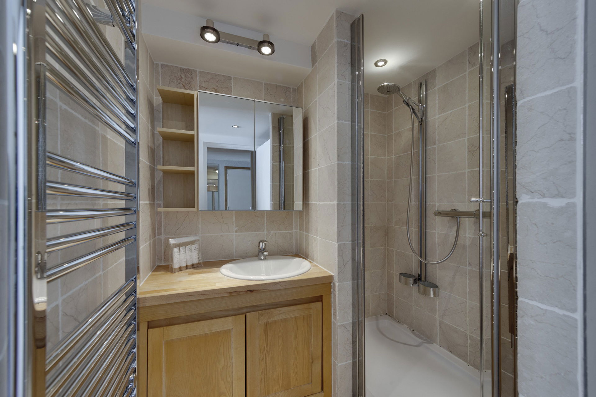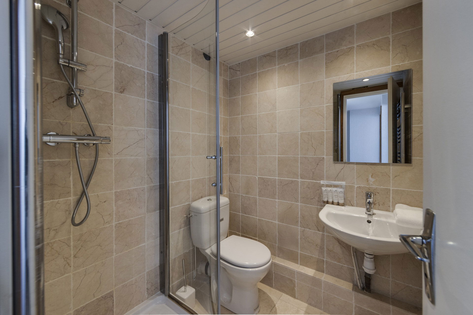 * Une salle de bain douche, lavabo-WC