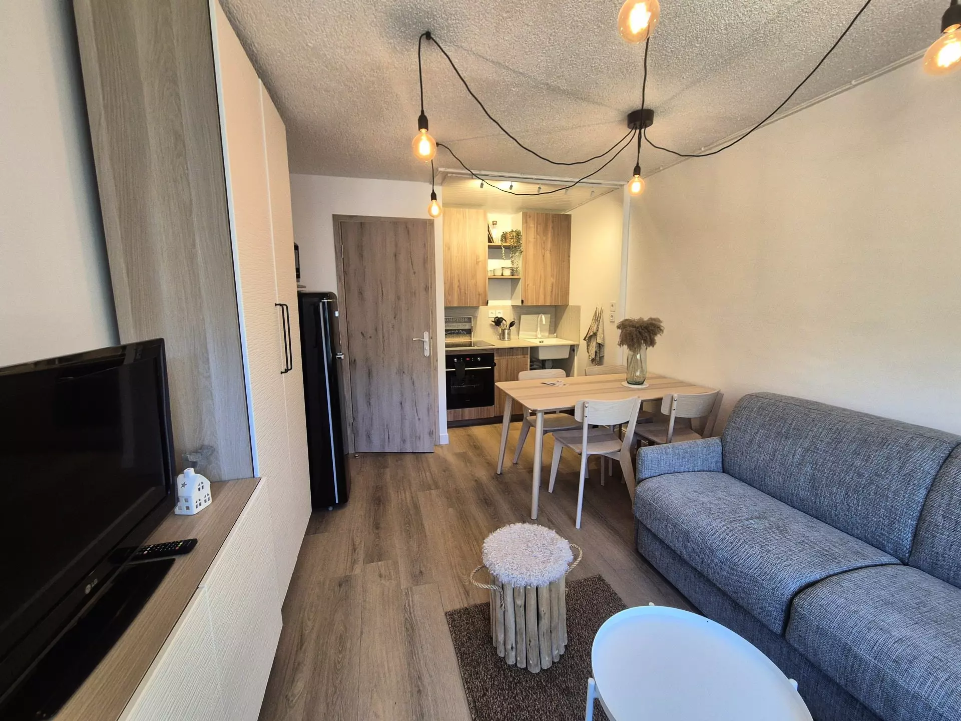Studio de 23m² entièrement rénové, pouvant accueillir 4 personnes, situé au 1er étage avec ascenseur de la résidence Moutières B1, à Tignes Le Val Claret Haut.