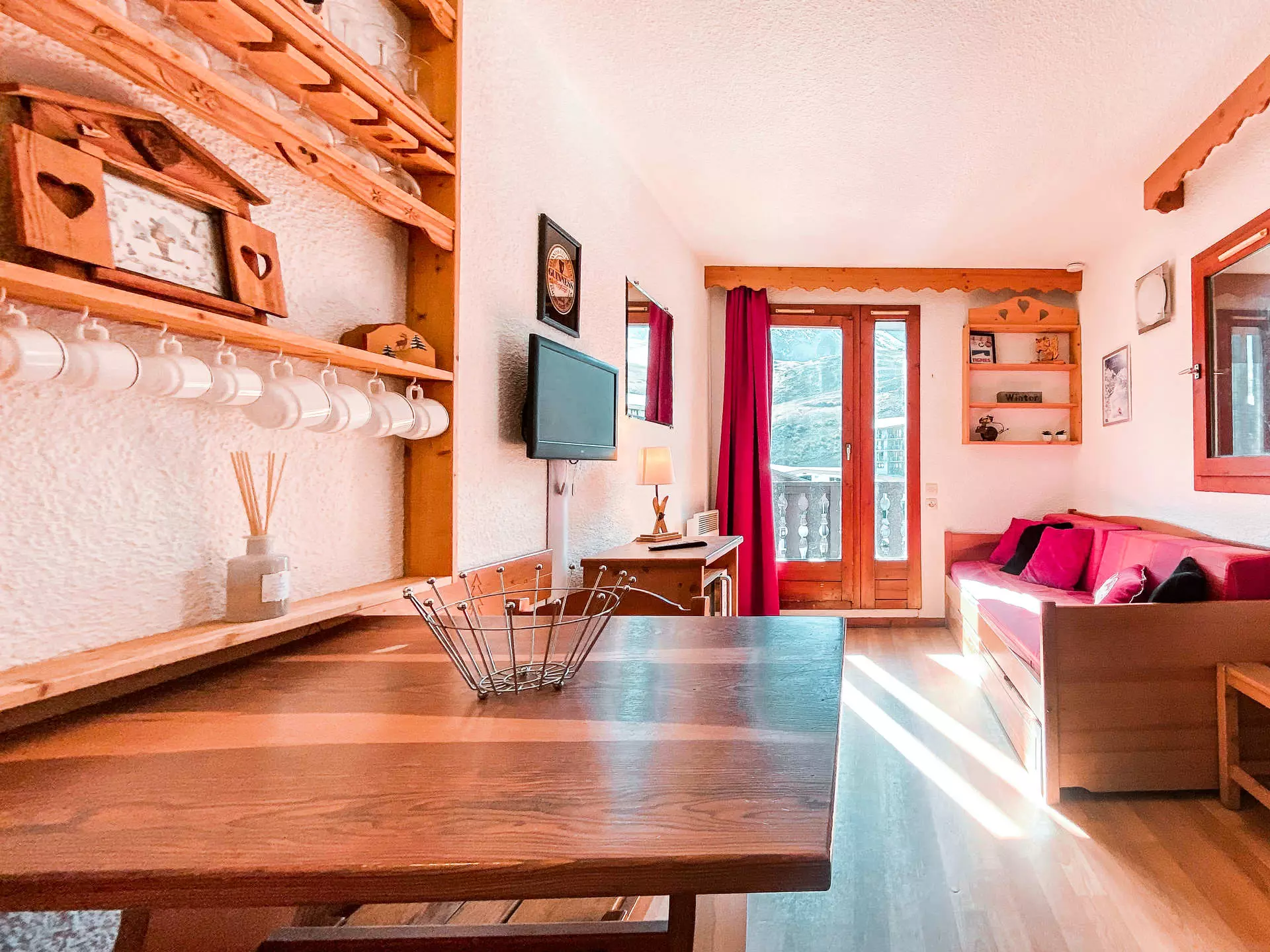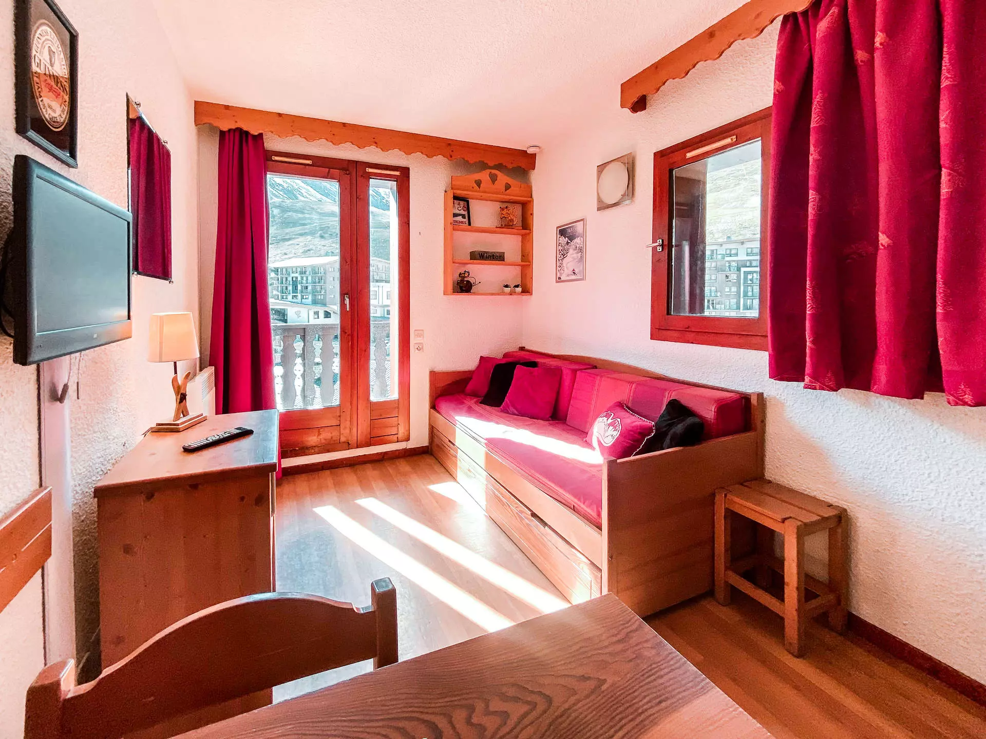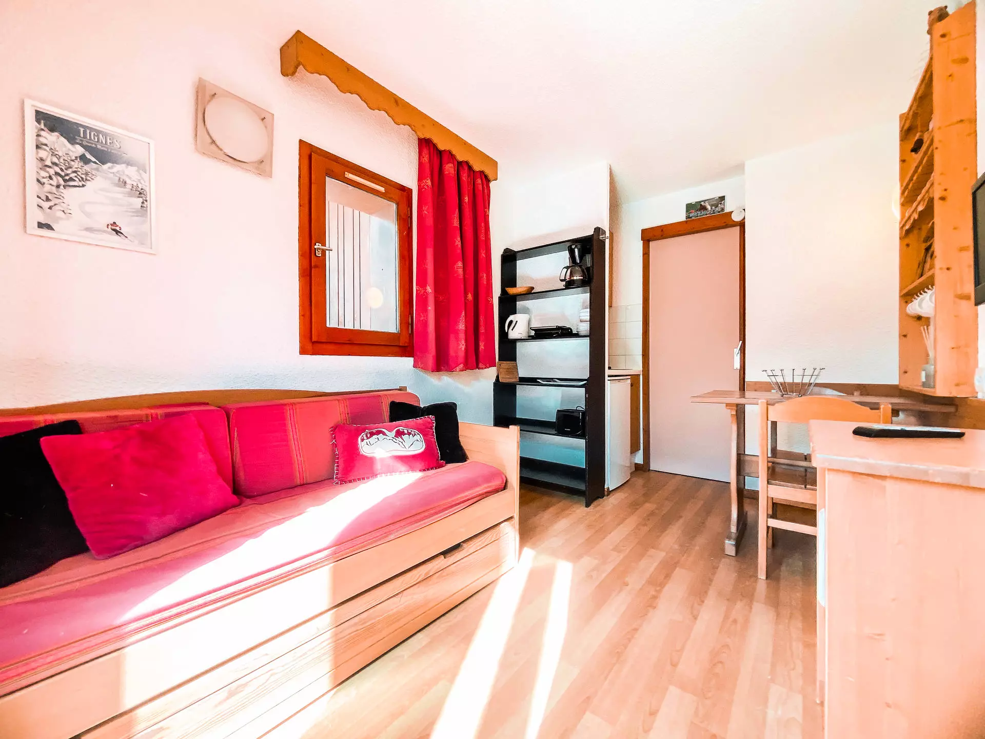 Pour vos vacances au ski à Tignes, réservez ce joli studio qui bénéficie d'un balcon en angle exposé Ouest, avec une vue sur la montagne.