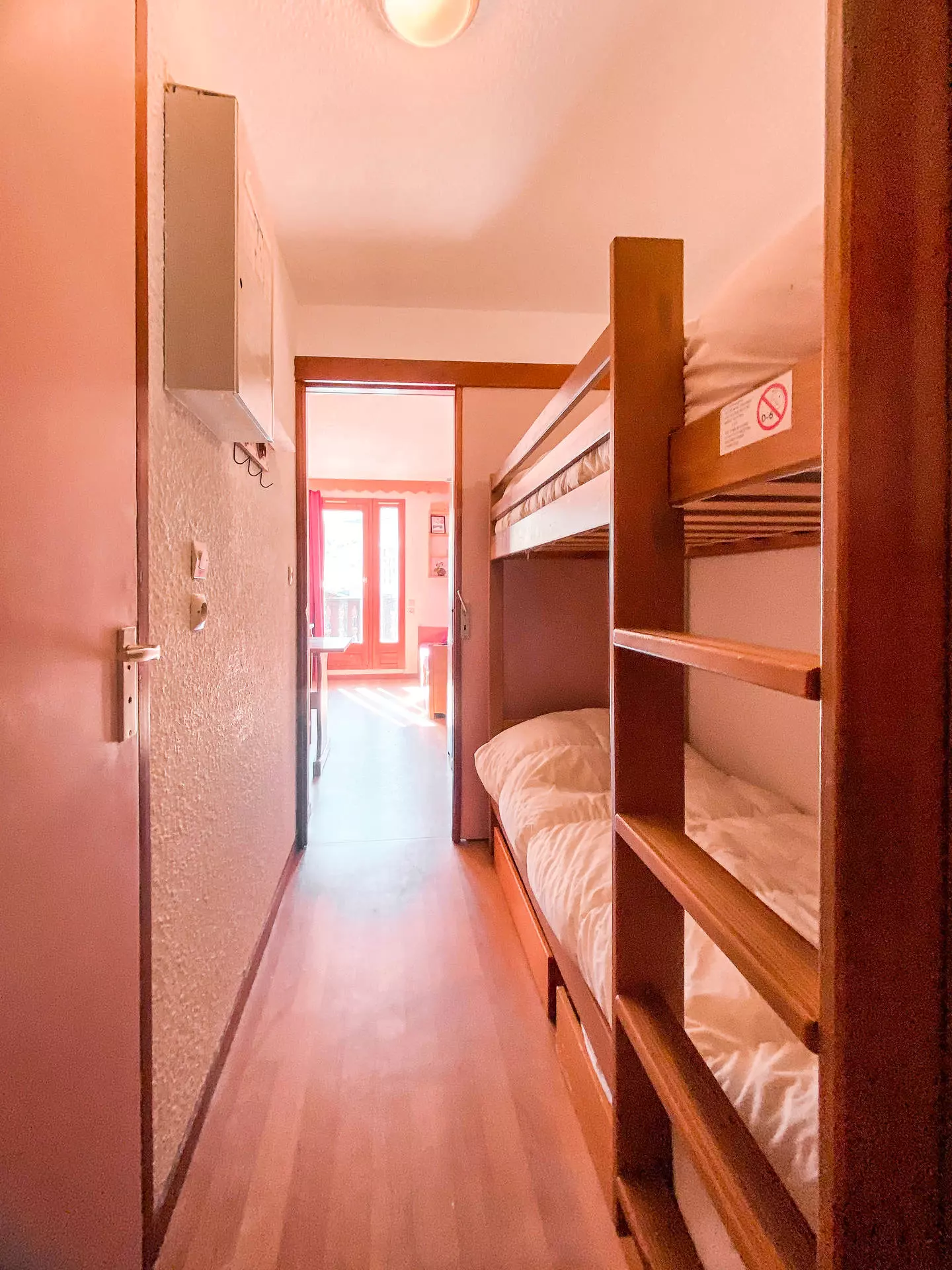 A votre disposition : un canapé-lit gigogne dans le séjour ou un ensemble de lits superposés dans l'entrée. L'entrée et le séjour sont séparés par une porte coulissante.